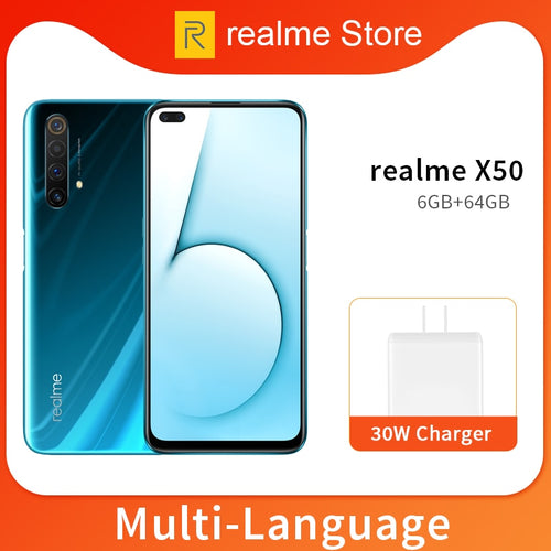 realme X50 X 50 5G 6GB 64GB 6.57'' Moblie Phone Snapdragon 765G Octa Core 64MP Quad Camera Cellphone VOOC 30W Fast Charger
